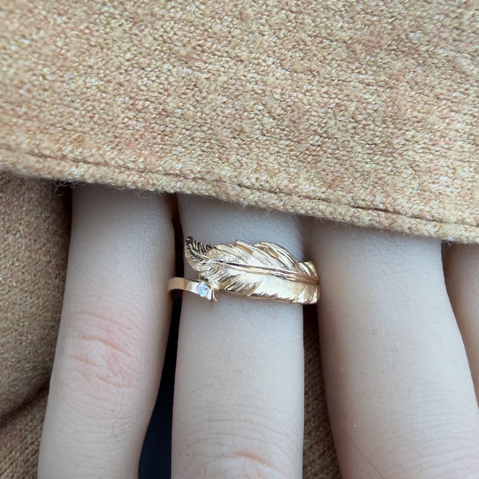 La plume enroule le doigt avec poésie, la bague peut se porter de plein de manières différentes.